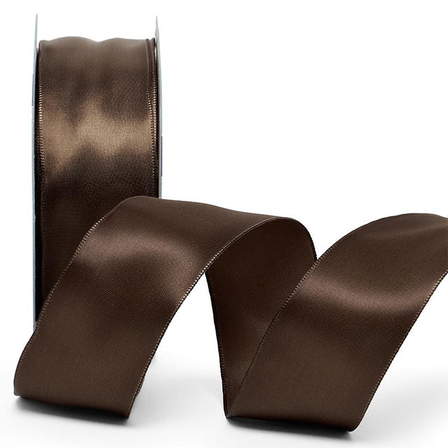 Woven-In Wired Satin Ribbon 1 1/2 '' X 25 yd Seal Brown Color