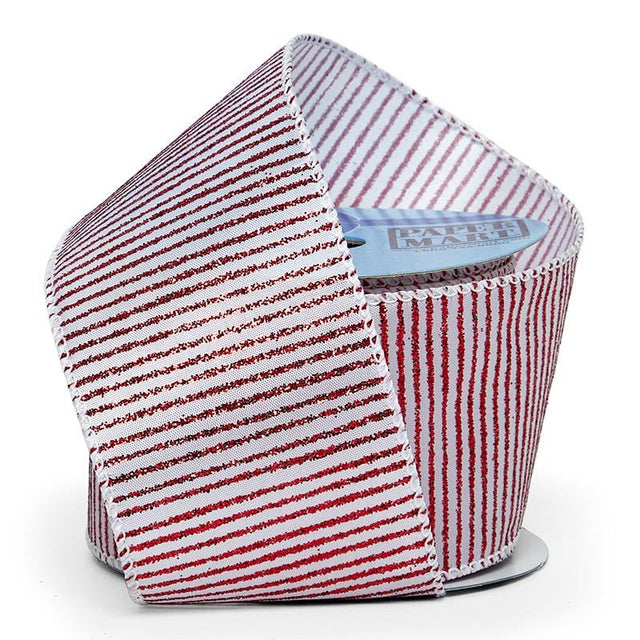 Red/White Metallic Glitter Stripes on Wired Ribbon – 2.5" x 10 Yards (1 Roll)