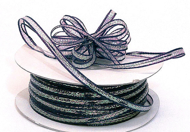 1/8"x50 yards Navy Blue Organza Pull Bows Ribbon with Iridescent Edge