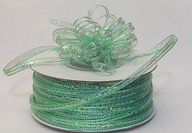 1/8"x50 yards Mint Green Organza Pull Bows Ribbon with Iridescent Edge