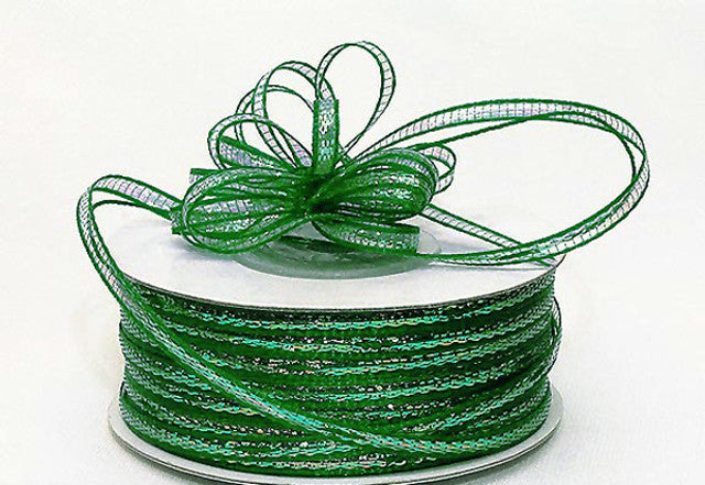 1/8"x50 yards Emerald Organza Pull Bows Ribbon with Iridescent Edge