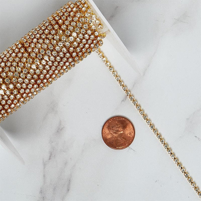 Rhinestone Chain - Gold Chain (1.5mm) x 5 Yards - 1 Roll is backordered and will ship as soon as it is back in stock.