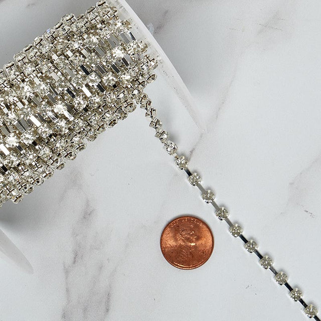 Rhinestone Chain - Silver Chain (3mm) x 5 Yards - 1 Roll is backordered and will ship as soon as it is back in stock.