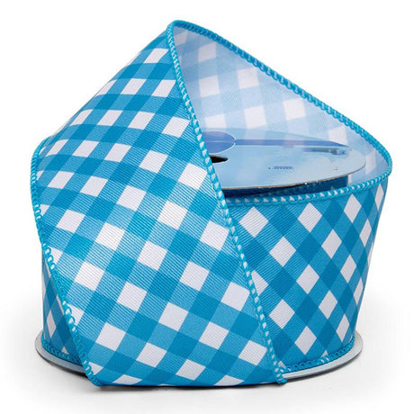 Bright Gingham Wired Ribbon 2 1/2 '' x 10 yd Blue Color 1 / ROLL