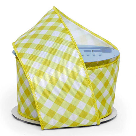 Bright Gingham Wired Ribbon 2 1/2 '' x 10 yd Lime Color 1 / ROLL
