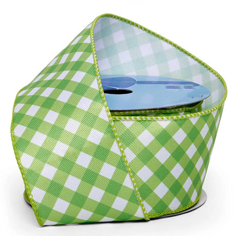 Bright Gingham Wired Ribbon 2 1/2 '' x 10 yd Apple Green Color 1 / ROLL