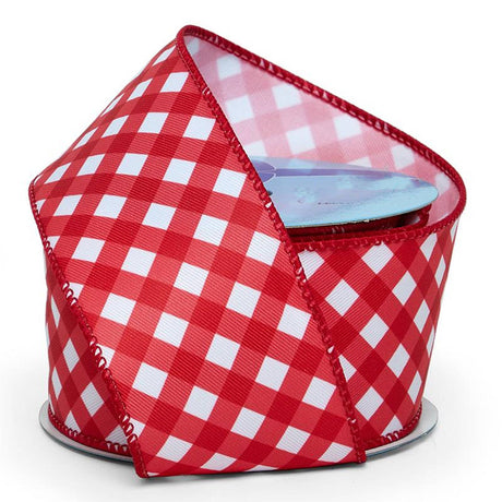 Bright Gingham Wired Ribbon 2 1/2 '' x 10 yd Red Color 1 / ROLL