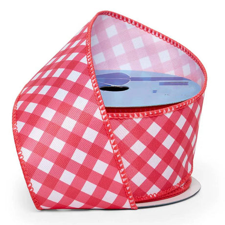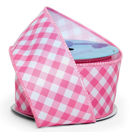 Bright Gingham Wired Ribbon 2 1/2 '' x 10 yd Pink Color 1 / ROLL