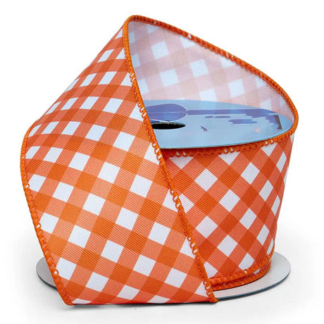 Bright Gingham Wired Ribbon 2 1/2 '' x 10 yd Orange Color 1 / ROLL