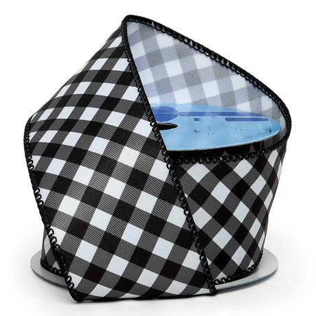 Bright Gingham Wired Ribbon 2 1/2 '' x 10 yd Black Color 1 / ROLL