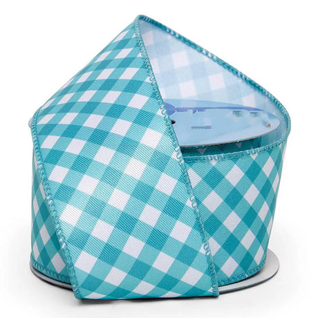 Bright Gingham Wired Ribbon 2 1/2 '' x 10 yd Sky Blue Color 1 / ROLL