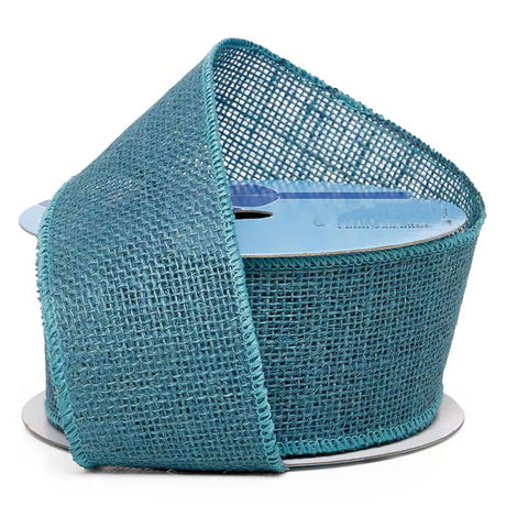 Burlap Wired Ribbon 2 1/2 '' X 10 yd Teal Color 1 / ROLL