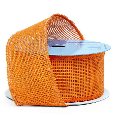 Burlap Wired Ribbon 2 1/2 '' X 10 yd Orange Color 1 / ROLL