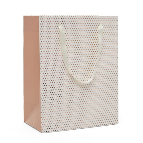 Metallic Dots Euro Totes with Ribbon Handles 7''x 3 7/8 ''x 9'' White / Silver - 12 each / package