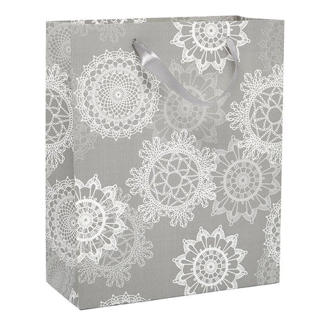 Light Silver Sparkle Snowflakes Bag 10 1/4''x 4 3/4''x 12 5/8'' Medium - 12 EACH / PACKAGE
