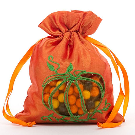 Pumpkin Taffeta Bags 5'' :6 1/2'' x Stitched Pumpkin - 6 EACH / PACKAGE