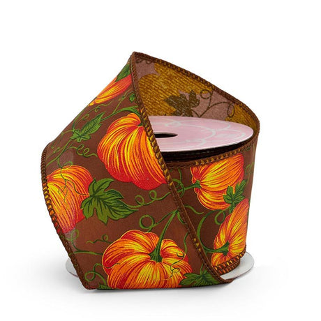 Pumpkin Patch Wired Ribbon 2 1/2 '' x 10 yd Brown (Linen) - 1 / roll