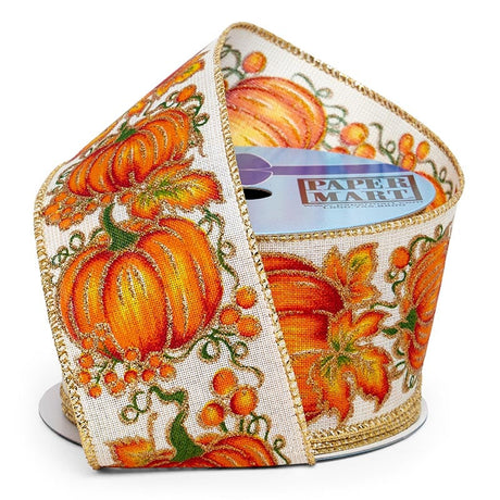 Pumpkin Print Wired Ribbon 2 1/2 ''x10 yd 1 / ROLL
