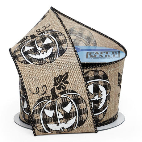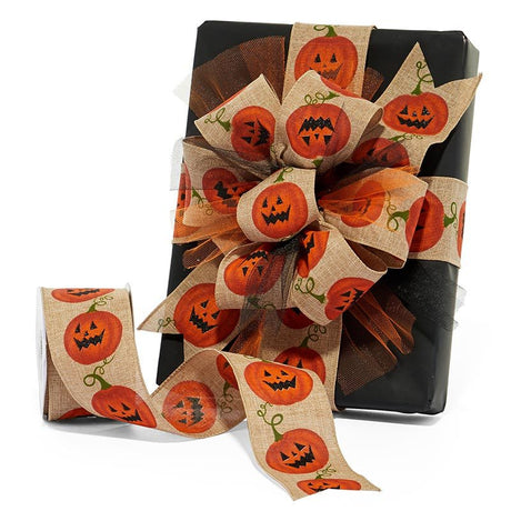 Halloween Pumpkin Wired Ribbon 2 1/2 ''x10 yd - Natural Color 1 / roll