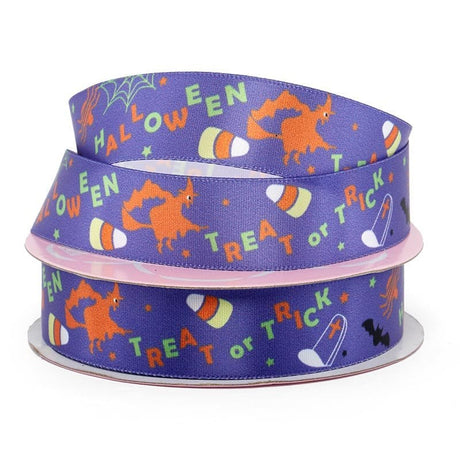 Narrow Halloween Patterns Satin Ribbon 7/8 ''x25 yd - Happy Theme Purple Color 1 / ROLL