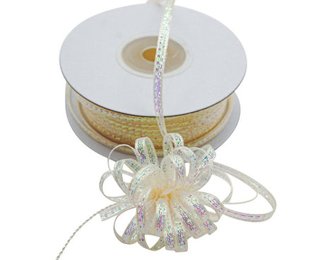 1/8"x50 yards Ivory Organza Pull Bows Ribbon with Iridescent Edge