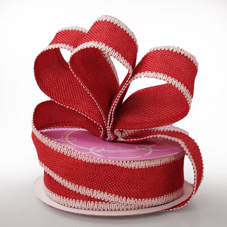 Side Stitch Burlap Ribbon 1 1/2 '' X 10 yd Red / White Color 1 / roll