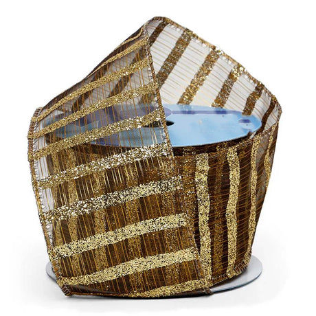 Sparkling Stripes On Sheer Wired Ribbon 2 1/2 '' X 10 yd Old Gold Color 1 / roll