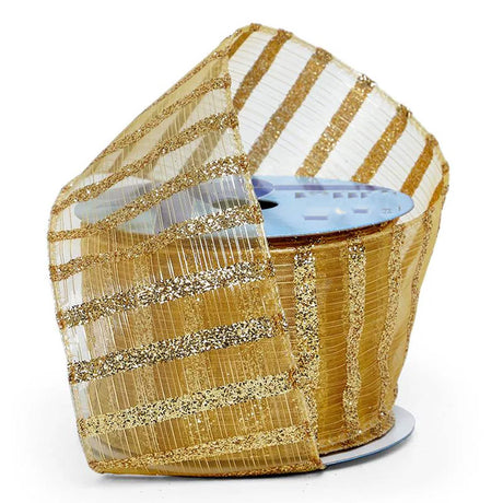 Sparkling Stripes On Sheer Wired Ribbon 2 1/2 '' X 10 yd Gold Color 1 / roll