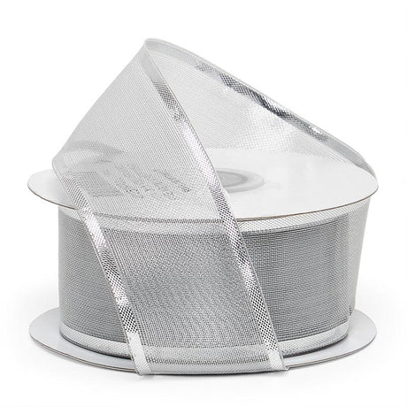 Semi-Sheer with Solid Edge Ribbon 1 '' X 25 yd Silver Color 1 / roll