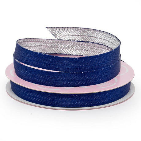 Narrow Two-Tone Metallic Back Ribbon 5/8 '' X 25 yd Navy / Silver Color 1 / roll