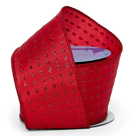 Mini Glitter Diamonds On Satin Wired Ribbon 2 1/2 '' X 10 yd Red Color 1 / roll