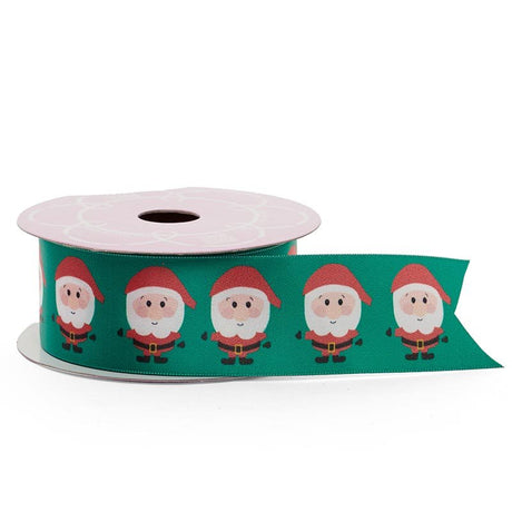 Holiday Patterned Satin Ribbon 5/8 '' X 25 yd Green Santas Color 1 / roll