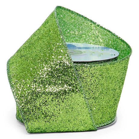Grand Glitter Wired Fabric Ribbon 2 1/2 '' X 10 yd Apple Green Color 1 / roll