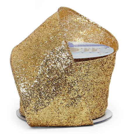 Grand Glitter Wired Fabric Ribbon 2 1/2 '' X 10 yd Gold Color 1 / roll