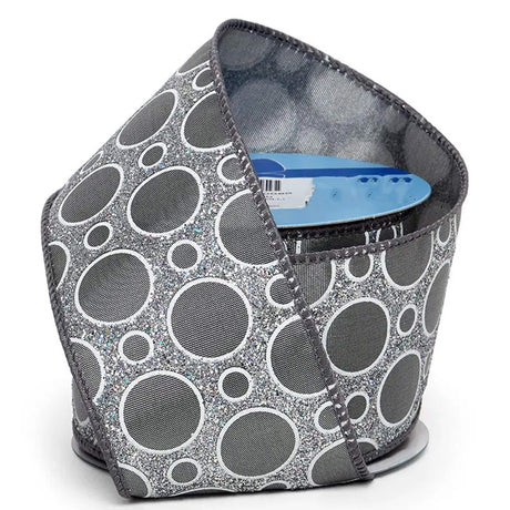 Glitter Bubbles On Satin Wired Ribbon 2 1/2 '' X 10 yd Pewter Color 1 / roll