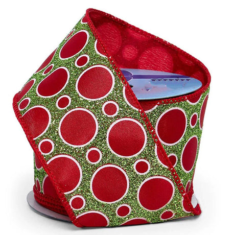 Glitter Bubbles On Satin Wired Ribbon 2 1/2 '' X 10 yd Lime / Red Color 1 / roll