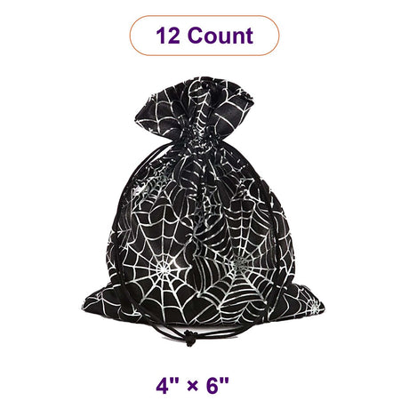 Spider Web Fabric Bags 4 '' x 6 '' Black / Silver Satin Color 12 EACH / PACKAGE