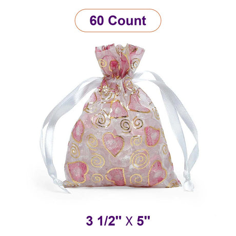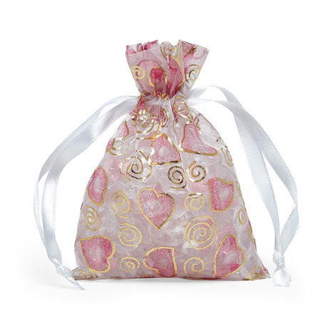 Printed Patterns On Flat Organza Bags 3 1/2 '' x 5 '' Hearts & Swirls Color 30 EACH / PACKAGE