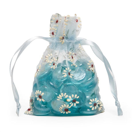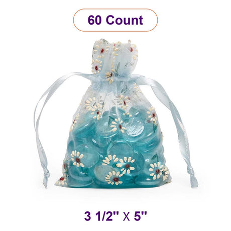 Printed Patterns On Flat Organza Bags 3 1/2 '' x 5 '' Daisies on Blue Color 30 EACH / PACKAGE
