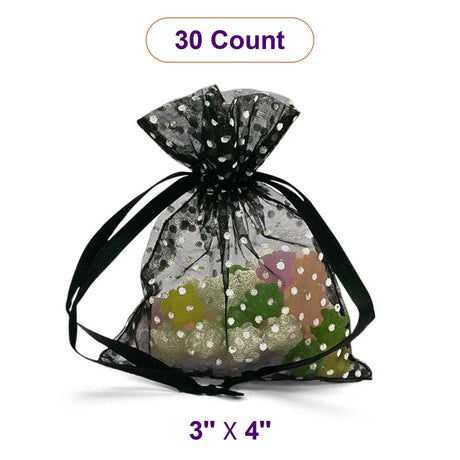 Polka Dot Organza Bags 3 '' x 4 '' Black Color 30 EACH / PACKAGE