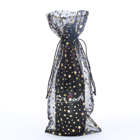 Star Print Organza Wine Bags 6 1/2 '' x 15 '' Black Color 12 EACH / PACKAGE