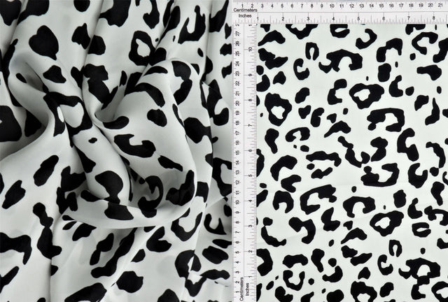 This lightweight satin fabric showcases a bold animal print with a smooth, glossy finish. Made from 100% polyester, it has a soft hand, fluid drape, and a subtle sheen—perfect for blouses, dresses, scarves, linings, and statement fashion pieces.
