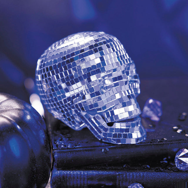 Provide some sparkle in Halloween displays with this decoration that features a mini skull covered in disco mosaic tiles. Perfect for adding a unique touch to your spooky decor, this eye-catching piece is made from durable plastic.