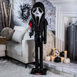 Standing at an impressive 5 feet, this limited-edition decoration features the iconic Ghost Face mask on a stylish, wooden nutcracker figure. This spooky decoration holds a bloody knife and is clothed with a familiar black, hooded robe, making it an eye-catching piece for Halloween.