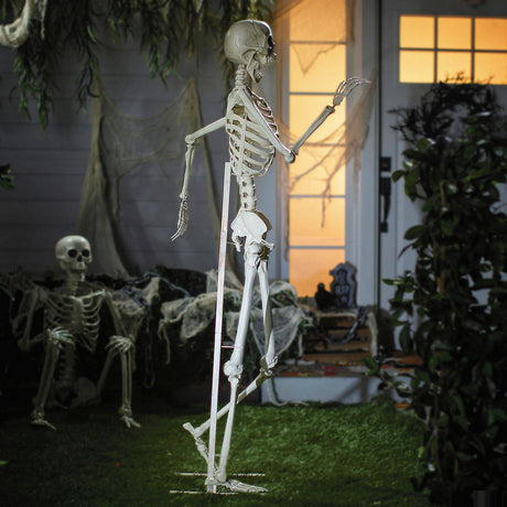 Durable Metal Pose-N-Stay Skeleton Stand for Spooky Halloween Decorations and Haunted House Displays