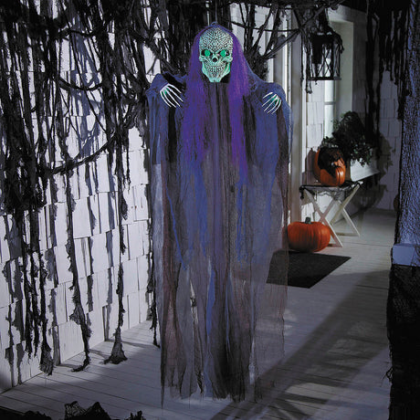 5 Ft 2 Inch Sonic Hanging Skeleton Reaper for Halloween Party Decorations and Haunted House Displays