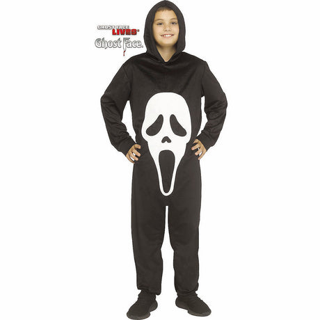 Kids Ghost Face E-Z Hooded Jumpsuit Costume for Halloween Parties and Spooky Dress-Up Events