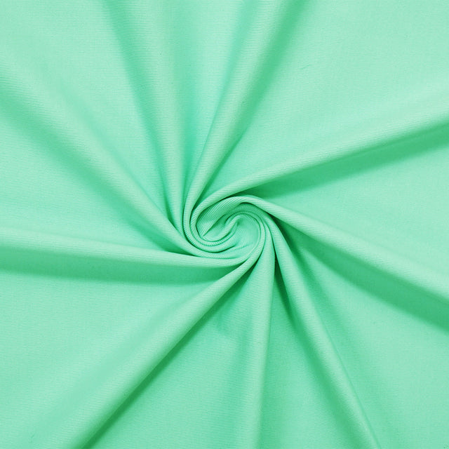 Experience comfort and flexibility with this Pastel Teal nylon spandex tricot knit fabric, designed for active lifestyles. Crafted from 94% nylon and 6% spandex, this light-weight fabric offers excellent four-way stretch, a soft and cool hand feel, and good drape. Its opaque and low luster finish makes it perfect for apparel, dancewear, basic tees, dresses, and activewear. Machine washable for easy maintenance.