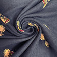1 Yard Navy Blue Double Brushed Jersey Knit with Multicolor Rainbow Print , Lightweight Stretch 58 Inches Width