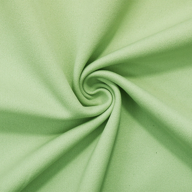 This light green solid nylon spandex double knit fabric is designed for versatile apparel and activewear uses. Made from 96% nylon and 4% spandex, it features a soft, dry hand with moderate four-way stretch for comfortable movement. Its light to medium weight and full-body drape provide excellent structure for garments such as jackets, suits, and slacks. The matte finish offers a subtle, elegant look. Durable and easy to care for, it’s machine washable for everyday convenience.